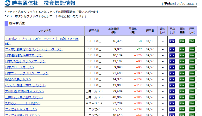 投資信託基準価額情報一覧ページの詳細や留意事項などについては、一覧ページ下部にてご確認ください。