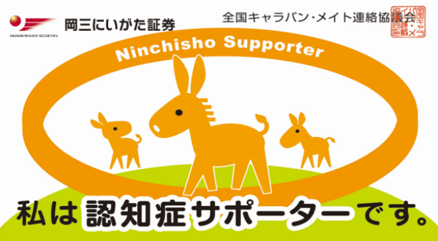 岡三にいがた証券では、役職員一人ひとりが認知症への正しい知識と接し方を身につけるため、全役職員が「認知症サポーター養成講座」を受講し、「認知症サポーター」となっています。