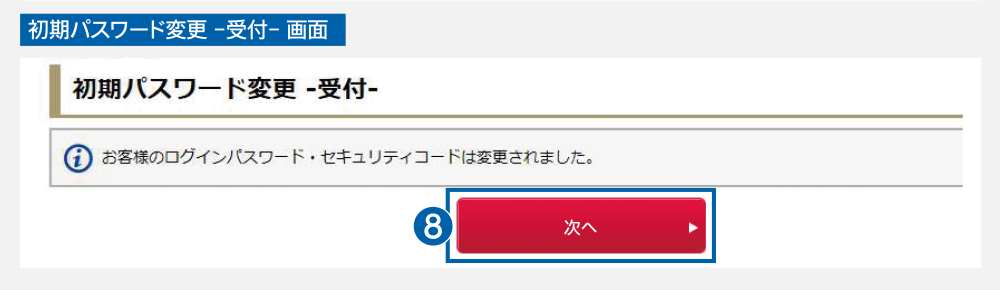 - 「現在のセキュリティコード」は、初期設定としてお客さまの生年月日(半角数字8桁)が設定されています(法人のお客さまは「00000000」)。