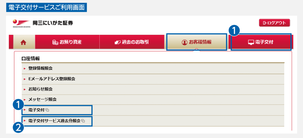 リニューアル後のお取引等に関する電子交付書面は、「電子交付」でご覧いただけます。
