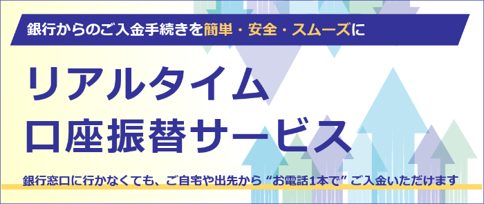 「リアルタイム口座振替サービス」とは、あらかじめ当サービスへお申込・ご登録いただくことで、お電話等によるご指示によって、当社提携金融機関である第四北越銀行のお客さま預金口座から、当社の証券総合取引口座への入金が完了するサービスです。